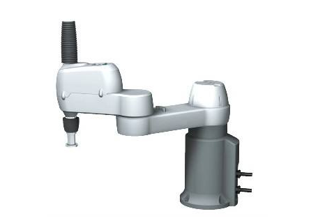 水平多關(guān)節(jié)工業(yè)機(jī)器人,包括底座,底座上設(shè)置有下臂,下臂上設(shè)置有上臂,上臂的右側(cè)設(shè)置有驅(qū)動電機(jī)、主動帶輪、從動帶輪、花鍵軸、諧波減速機(jī)以及傳動軸,驅(qū)動電機(jī)豎直設(shè)置在主動帶輪的上方,主動帶輪在驅(qū)動電機(jī)的驅(qū)動下進(jìn)行轉(zhuǎn)動,從動帶輪設(shè)置在主動帶輪的右側(cè)并通過同步帶與主動帶輪同步轉(zhuǎn)動,從動帶輪的中心豎直設(shè)置有傳動軸,傳動軸貫穿從動帶輪且向下延伸形成延伸部,諧波減速機(jī)設(shè)置在傳動軸的延伸部上,傳動軸的中心設(shè)置有花鍵軸,花鍵軸貫穿諧波減速機(jī)并向外延伸,諧波減速機(jī)通過花鍵母與傳動軸固定連接。