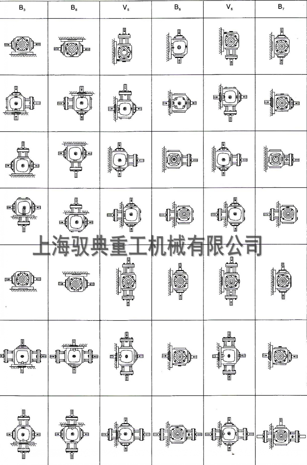 T型轉(zhuǎn)向箱全稱:T系列螺旋錐齒轉(zhuǎn)向箱,又稱T系列換向器、換向箱等,他的主要作用是改變軸的方向,或者把一根軸分配成多根,要達(dá)到這個(gè)功能,跟安裝形式是密切相關(guān)的,為了適應(yīng)不同的工況,和不同的安裝環(huán)境,T型螺旋傘齒輪轉(zhuǎn)向箱安裝形式主要分為B3、B8、V5、B6、V6、B7六種。其中B3是我們平時(shí)比較常用的,俗稱臥式安裝,B8是頂上安裝,其他的V5、B6、V6、B7為側(cè)面安裝,安裝形式雖然運(yùn)用較少,但是也偶爾用到,大家可以做個(gè)參考,根據(jù)自己實(shí)際需要的安裝環(huán)境來確定安裝形式即可。(見下圖)