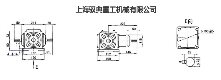本款型號適用于一輸入兩軸輸出,速比1:1或者2:1、3:1,都可以做,輸出正反轉(zhuǎn)也都可以做,如果要反轉(zhuǎn),型號后面加-O。如果需要完整圖紙,歡迎聯(lián)系上海馭典重工。