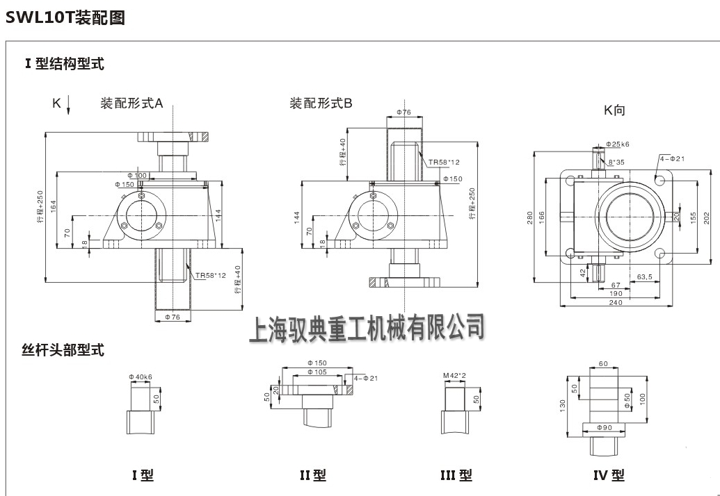 SWL15(SWL10T)分為兩種形式,分別是絲桿上下升降和螺母上下升降。
