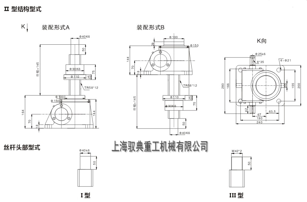 *絲桿頭部:I 圓柱形、II 螺紋型;